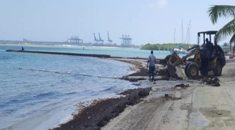 BOCA CHICA.-El alcalde municipal de esta localidad ingeniero Fermín Brito, dispuso de varias brigadas para el retiro de ocho toneladas y media de sargazo que se alojó en toda la playa, para lo que se solicitó la ayuda del Ministerio de Obras Publicas de donde procedieron las maquinarias que trabajaron en la limpieza.